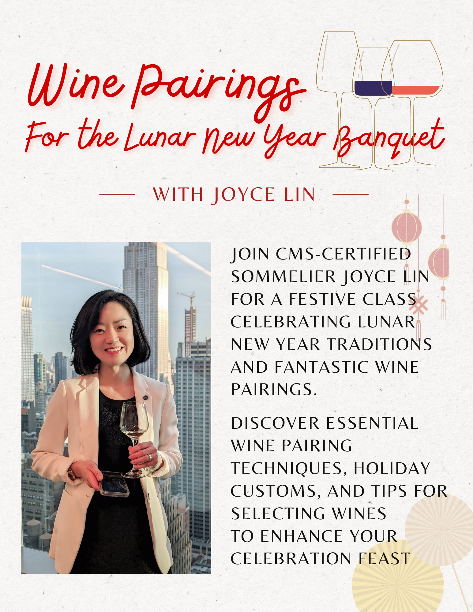 You’ll explore the symbolism of Lunar New Year dishes, taste beautifully paired wines from around the world, and learn practical pairing skills you can use with: